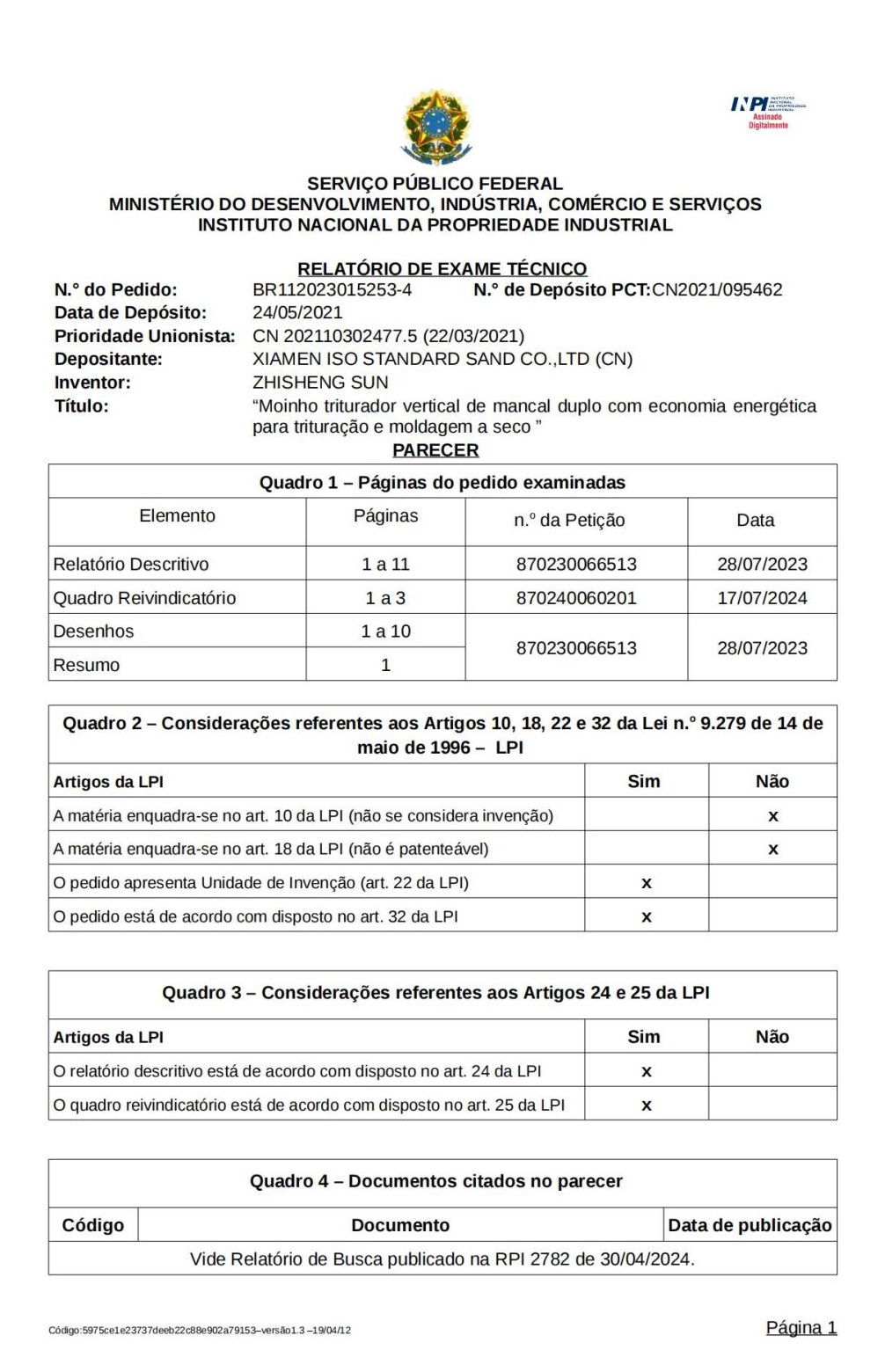 近日,廈門艾思歐標準砂有限公司專利獲巴西國家工業(yè)產(chǎn)權局(INPI)PCT ... ?